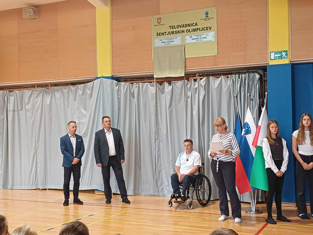 Ob lanskoletnem nastopu atleta Henrika Planka na paraolimpijskih igrah v Parizu smo v naši telovadnici, ki nosi ime po šentjurskih olimpijcih, slavnostno odkrili ploščo z njegovim imenom. Henrik je Slovenijo in Šentjur zastopal že na štirih paraolimpijskih igrah: v Pekingu (2008), Londonu (2012), Tokiu (2021) in nazadnje v Parizu (2024).