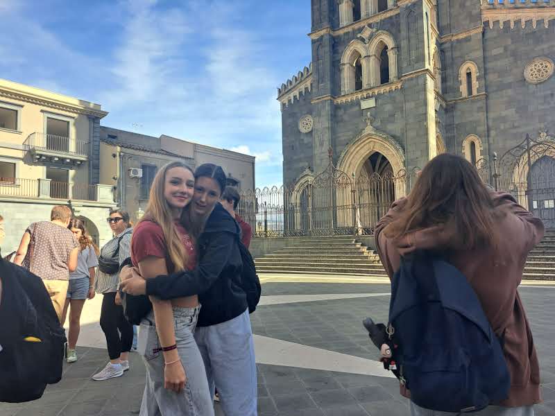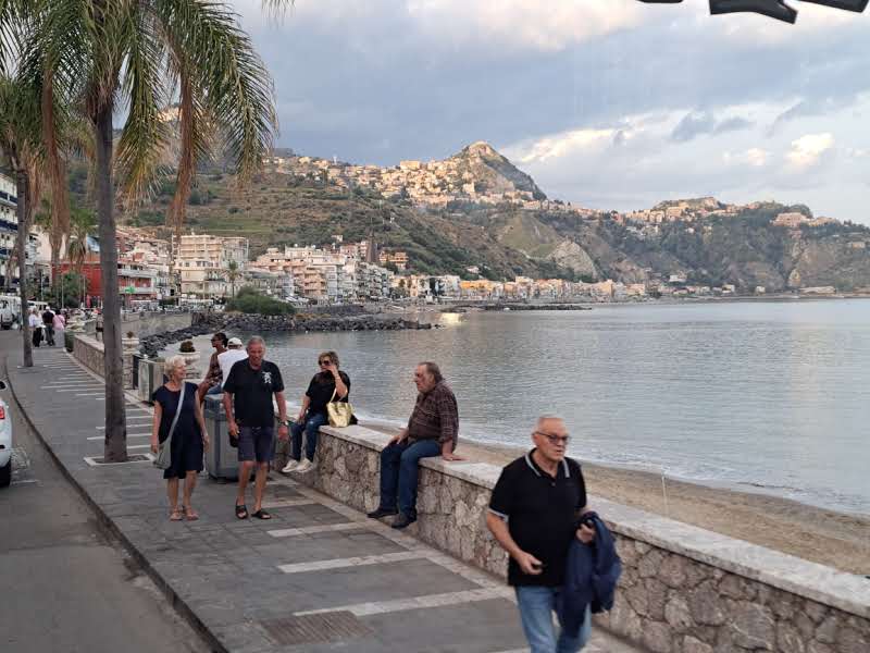 Kot češnja na torti pa nas je čakal še nepričakovan dodatek – obisk Taormine in čarobne Isole Belle. Taormina, eno najlepših mest na Siciliji, nas je očarala s svojim živahnim mestnim utripom in ozkimi ulicami, polnimi cvetja. Mesto že stoletja navdihuje umetnike, pisatelje in glasbenike. Nekaj kilometrov nižje smo se ustavili še pri Isola Bella, majhnem otočku, povezanem s kopnim z ozkim pasom peska. Ta “lepi otok”, kot pove že ime, je pravi naravni dragulj, obdano z modrino Jonskega morja in bujnim zelenjem. Njegova plaža je ena najlepših na Siciliji, z vodo tako kristalno čisto in toplo, da smo ob namakanju nog skoraj pozabili, da je oktober.