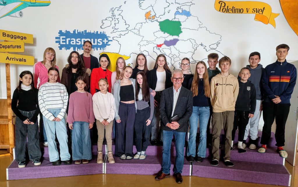 V četrtek, 13. novembra 2025, je osnovna šola Franja Malgaja gostila učenke in učitelja partnerske šole Bundesgymnasium und Bundesrealgymnasium Carneri iz Gradca ter gospoda Mitjo Drobniča, upokojenega diplomata, veleposlanika in predstavnika društva Avstrijsko-slovensko prijateljstvo Gradec.