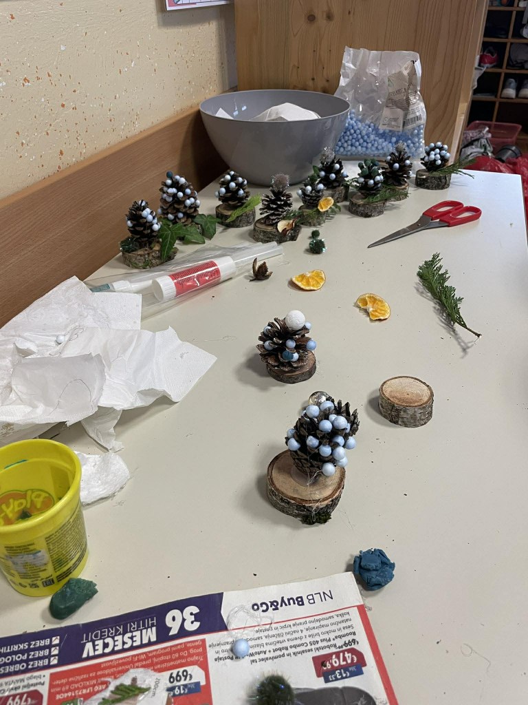 Učenci oddelka NIS smo si pričarali predpraznično vzdušje in izdelali izdelke, ki jih bomo ponudili na Miklavževem sejmu. Učenci so se pri izdelavi zelo potrudili in vsak je prispeval svoj košček ustvarjalnosti v skupni mozaik dobrih idej in razrednega duha. Želimo si, da bi našo stojnico z radovednostjo obiskali in prispevali dobrodelni prispevek, s katerim si bomo olajšali sofinanciranje nadstandardnih dejavnostih v oddelkih NIS.