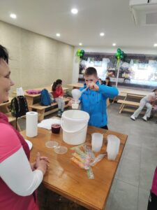 Ogled smo zaključili v njihovem prostoru za degustacijo, kjer smo si namešali vsak svoj sadni jogurt in se sprehodili še skozi trgovinico, ki je polna dobrot! Pa seveda, nismo pozabili tudi na petje slovenskih pesmi v zahvalo za go. Darijo in njeno prijaznost na naravoslovnem dnevu.