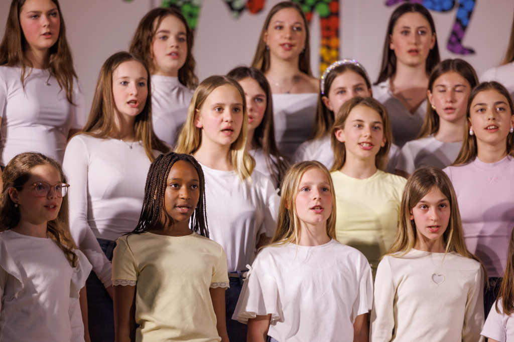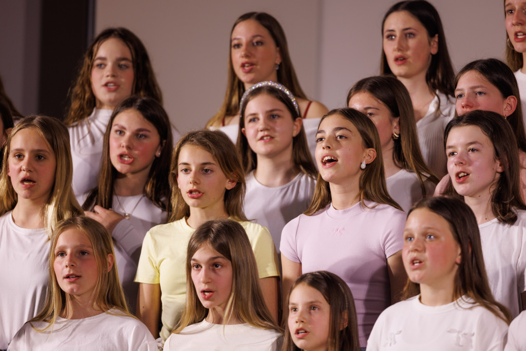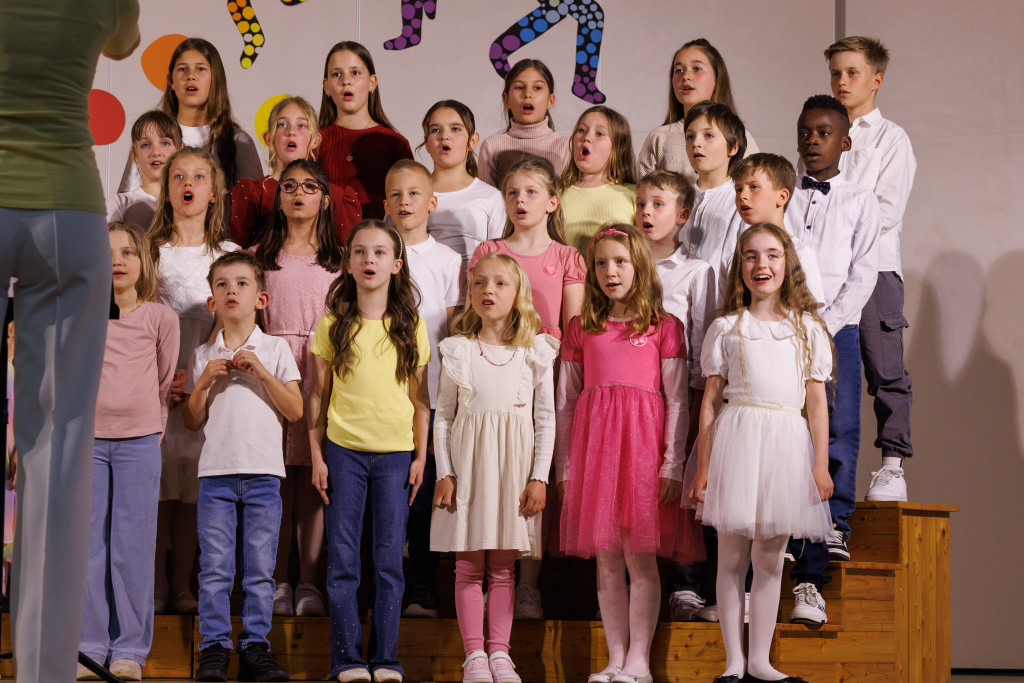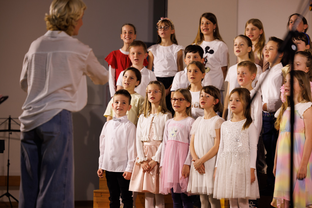 Posebno mesto sta imela nastopa naših dveh zborov – otroškega in mladinskega, v katerih skupaj prepeva približno 100 pevk in pevcev. Pod vodstvom zborovodkinje Marjetke Kozmus, ki se je naši šoli pridružila šele pred tremi tedni, so se predstavili z izbranimi pesmimi ter z ubranim petjem, zanesljivim nastopom in energijo navdušili zbrano občinstvo.