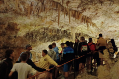 Naš izlet smo nadaljevali v Postojnsko jamo, ki je največja jama klasičnega krasa in hkrati najbolj obiskana turistična jama v Evropi, ki jo oblikuje splet 20 kilometrov zakopanih rovov, galerij in dvoran. Z jamskim vlakom smo se zapeljali v notranjost in občudovali vso razsežnost in mogočnost podzemnega sveta, kjer je geološka preteklost zapisana na svojevrsten način.