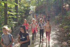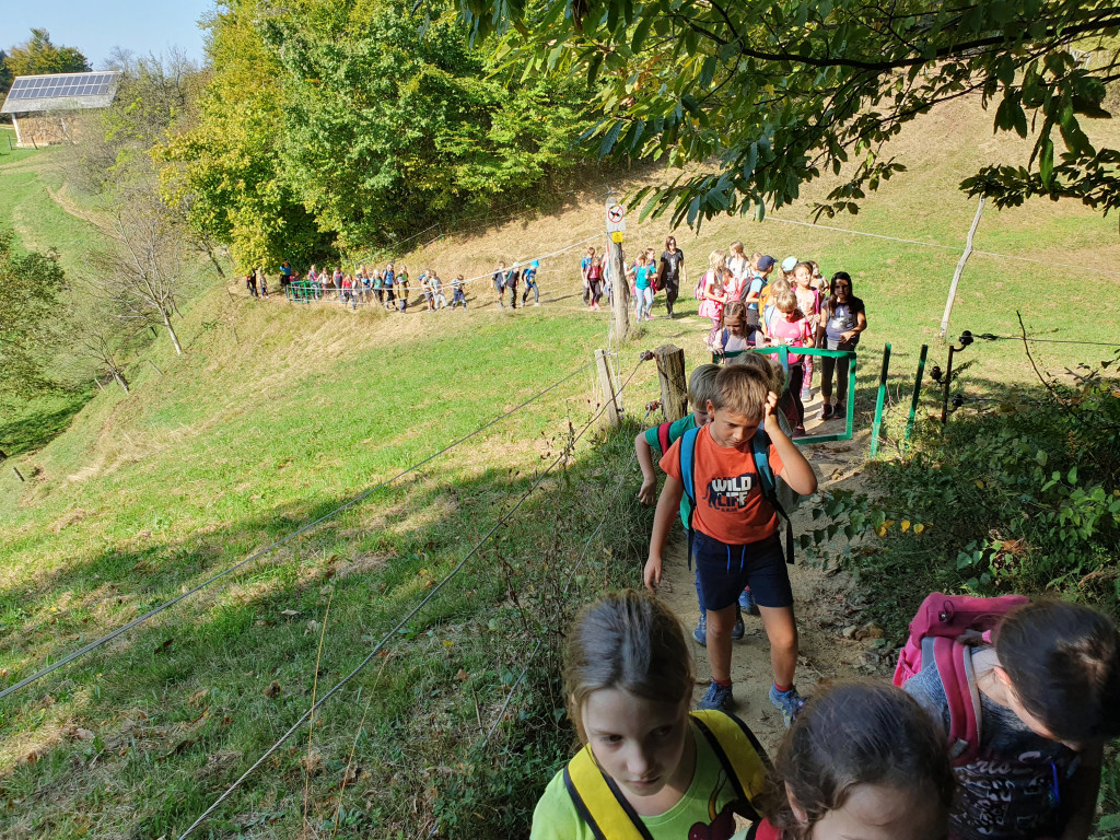 V soboto, 14. 10. 2023, se je 53 planincev in planink OŠ Franja Malgaja Šentjur in POŠ Blagovna s 4 mentoricami planinskega krožka odpravilo na drugi pohod v šolskem letu 2023/24, in sicer na Resevno, 682 m visok hrib, ki je med domačini zelo priljubljen. Pot smo začeli na parkirišču OŠ Hruševec in se pogumno podali v hrib. Ves čas so nas spremljali sončni žarki, grela pa nas je tudi strma pot. Vsake toliko časa smo gasili žejo, lakota pa je morala počakati do vrha. Ko smo prispeli na vrh, smo najprej pojedli dobrote iz nahrbtnika, nato pa se posladkali z okusnimi pečenimi kostanji, katere je za nas spekel g. Vojko, ki se mu prijazno zahvaljujemo. Ko so bili želodčki potešeni, je bil čas za pogovor in izmenjavo sladkarij. Ob vračanju nazaj v dolino smo se ustavili še na travniku pod vrhom in razgibali svoje telo ob izvajanju štafetnih iger. Z novim žigom v planinski knjižici smo se odpravili proti cilju, kjer so nas pričakali starši.