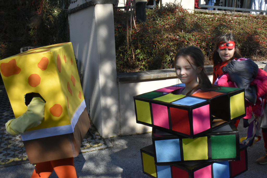 Takoj po malici smo se pred šolo zbrali vsi učenci razredne stopnje in učenci dveh oddelkov z nižjim izobrazbenim standardom, skupaj z učiteljicami, kjer nas je že zgodaj pozdravilo toplo sonce. Z navdušenjem smo si ogledovali drug drugega in ugibali kdo je pod masko. Letos nam je pust postregel z res čudovitimi in izvirnimi maskami. Posebna pohvala gre učencem in njihovim staršem, ki so kostum izdelali sami, in teh ni bilo malo, sicer pa so prav vse maškare prispevale k dobremu »karnevalskemu« vzdušju in kar je najpomembneje, opravile svojo nalogo, uspešno pregnale zimo.