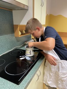 Učenci 5. in 6. č smo danes izkoristili deževni dan za peko slastnih vafljev. V okviru šolske ure gospodinjstva smo se učili varnega rokovanja z gospodinjskimi pripomočki, priprave vafljev in seveda tistega, kar pride na koncu, pa ni tako sladko – pospravljanja in pomivanja učilnice. Učenci so urili svoje sposobnosti in ugotovili, da je vse lažje, če sodelujemo kot ekipa. Delo smo si porazdelili tako, da je imel vsak majhen, a pomemben del priprave, brez katerega naš cilj ne bi bil dosežen. Tako smo se naučili sodelovati in ceniti delo drug drugega.