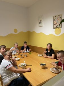 Na koncu smo se posladkali z nadevi po izbiri, zraven popili in pojedli še nekaj sadnega kompota, in naša ura gospodinjstva se je zelo hitro končala. Otroci pravijo, da bi najraje vsak dan preživljali v gospodinjski učilnici, zato se bomo zagotovo še vrnili in naslednjič pripravili okusno kosilo.