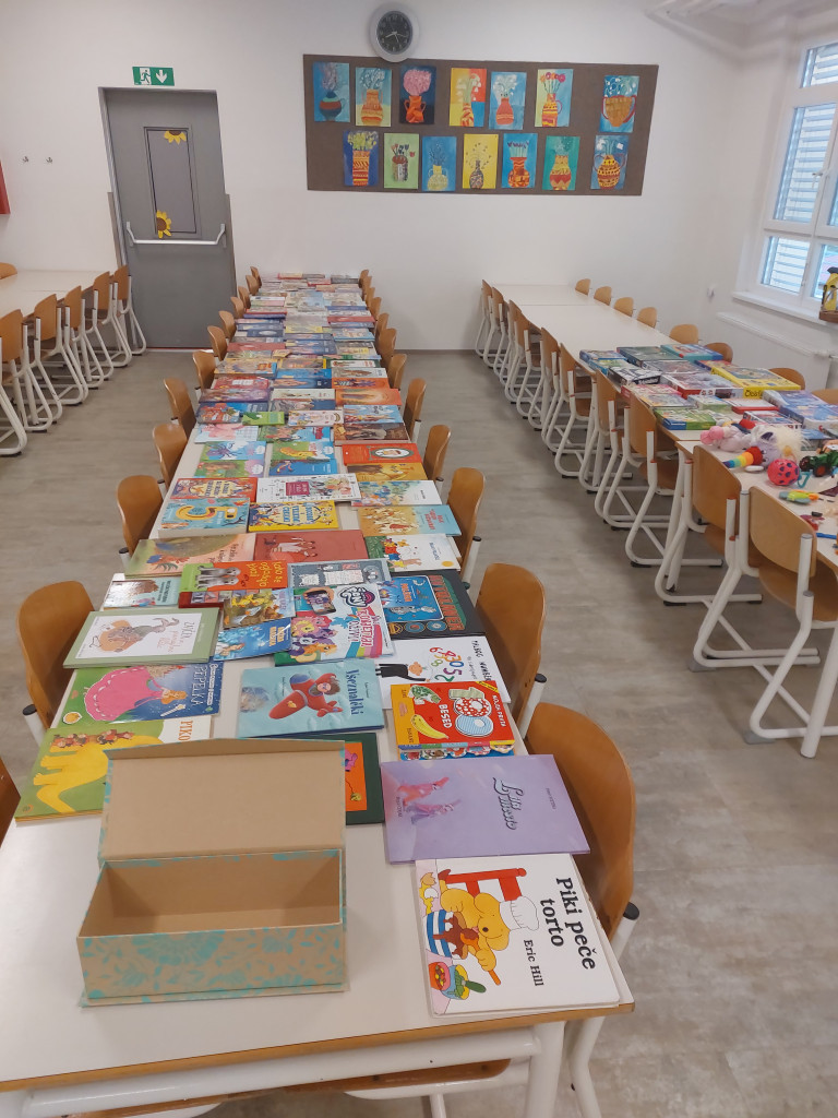 Prejšnji teden so učenci naše šole prinašali knjige in tudi igre za dobrodelno stojnico. V torek, 7. oktobra 2025, so si lahko izbrali knjigo po svojem okusu in jo odnesli domov za branje v prihodnjih tednih, oz. igro za krajšanje popoldneva.