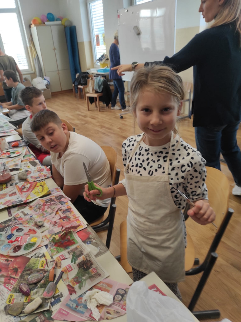 Učenci prilagojenega programa radi ustvarjamo, še raje pa imamo, ko zadiši po sladkem. V petek, 10. 10. 2025, smo združili oboje – ustvarjanje in peko. Poslikali smo kamenčke, ki bodo okraševali grobove in osrečili mimoidoče (kamen sreče). Prav tako pa smo pripravili sladke potičke in jih z veseljem pojedli. Utrinke dneva delimo spodaj.