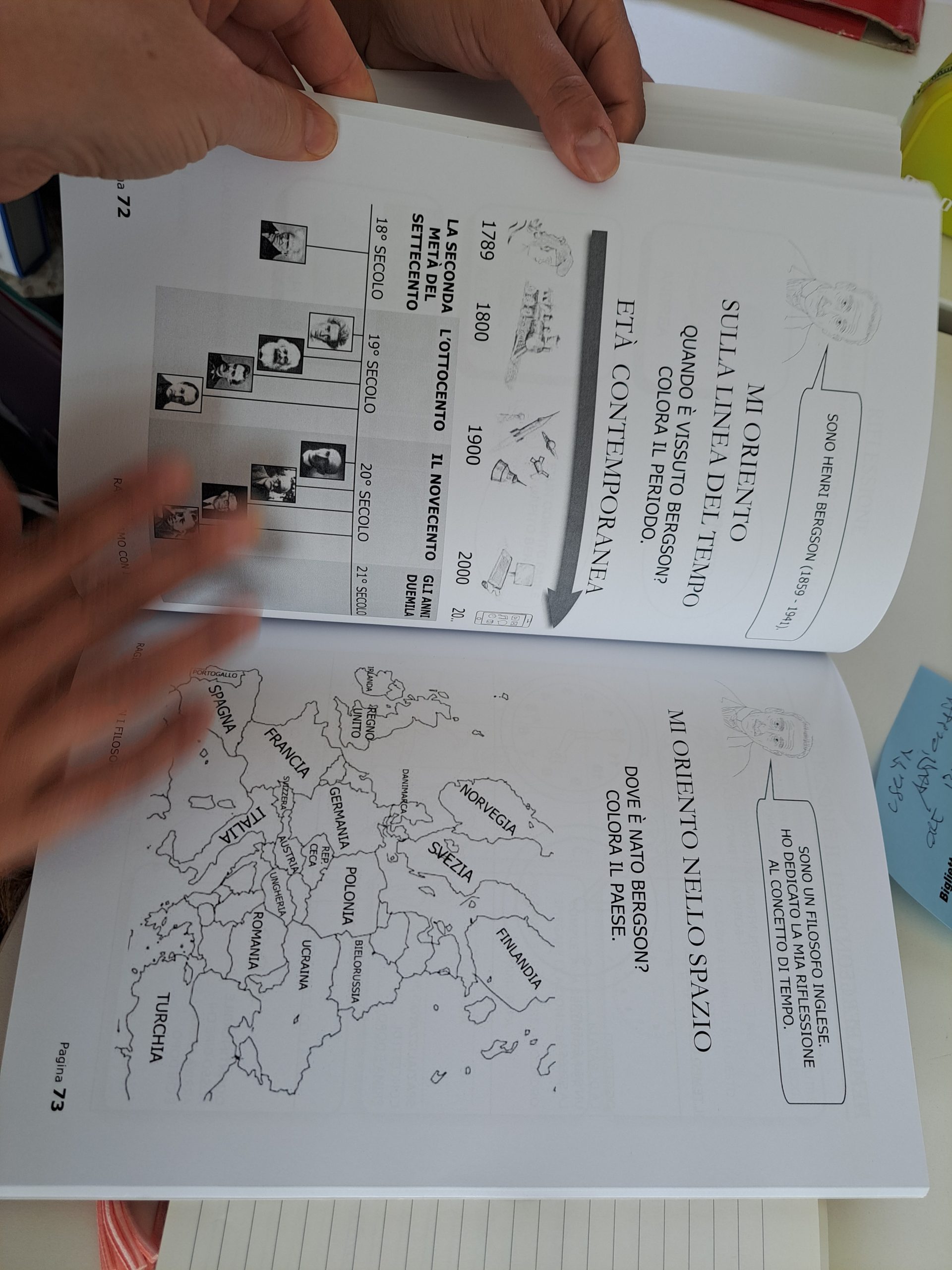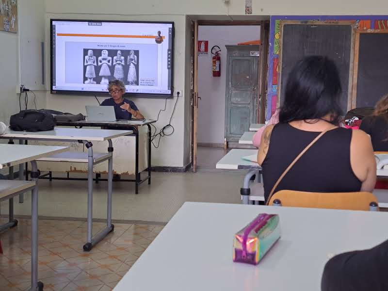 Učiteljica, ki dela z učencem s posebnimi potrebami, nam je predstavila italijanski srednješolski sistem, ki se začne z osnovno šolo (scuola primaria), ki traja pet let, sledi pa ji nižja srednja šola (scuola secondaria di primo grado), ki traja tri leta. Skupno torej učenci obiskujejo osem let obveznega šolanja. Po osnovni šoli sledi srednješolsko izobraževanje (scuola secondaria di secondo grado), ki traja pet let. Po petem letu dijaki opravljajo zaključni izpit – “esame di maturità”, s katerim pridobijo spričevalo o dokončani srednji šoli in možnost vpisa na univerzo ali višje strokovne šole. Italijanski in slovenski šolski sistem sta si podobna po dolžini obveznega šolanja in poudarku na dostopnosti izobraževanja za vse.