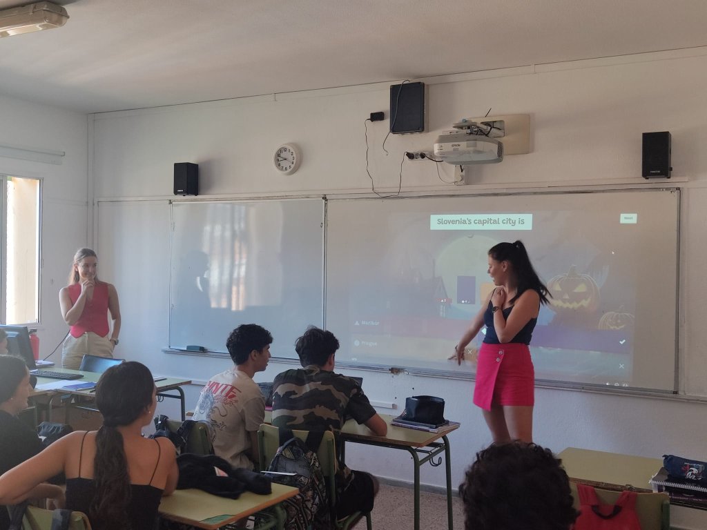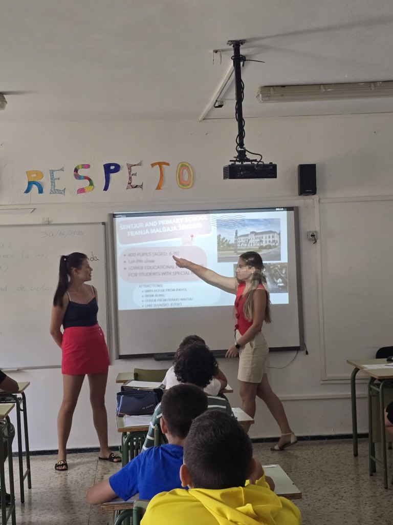 Četrti dan, četrtek, sva preživeli na šoli, kjer sva pripravili zanimive kvize (KAHOOT) in predstavitve naše države Slovenije in naše šole. Učenci so postavljali zanimiva vprašanja in bili navdušeni nad slovensko glasbo in lepotami Slovenije, prav tako so bili navdušeni nad urejenostjo naše šole in materialno opremo. Učenci so pogosto spraševali ali je naša šola zasebna ali javna, saj so se čudili nad prostorskimi in materialnimi kapacitetami. Tudi sami sva opazili, da so pri njih učilnice skromno urejene, vendar se učitelji trudijo, da zagotavljajo kar najboljše pogoje za učence. Prav tako sva opazili, da je na šoli prisotno prizadevanje za strpno in pozitivno klimo, kar spodbujajo tudi s plakati, dosegljivostjo učitelja za pogovore in socialnimi igrami v razredu. Prav tako je na šoli ničelna toleranca do nasilja in diskriminacije in je uveljavljena prepoved uporabe mobilnih telefonov. Spremljali sva tudi specialno pedagoginjo Lauro, ki nama je tokrat pokazala delo z učenci, ki ga opravlja v svojem kabinetu. Materiale zanje skrbno pripravita z nosilcem ure in k delu spodbujata učence s posebnimi potrebami. V petek sva se jim pridružili na dnevu dejavnosti, kjer so učenci imeli pouk na prostem. Socialnim igram je sledilo kuharsko tekmovanje in sproščeno druženje s pesmijo in plesom. Učenci so v roke vzeli kitaro, učitelji pa so njihovi iniciativi sledili s petjem in vzkliki navdušenja. Na kuharskem tekmovanju pa sva se pomerili tudi sami, saj sva pripravili tradicionalno slovensko jed, sirove štruklje. Odzivi učencev in učiteljev nad pripravljeno jedjo so bili izjemno pozitivni. Na dnevu dejavnosti sva opazili, da so dejavnosti potekale v sproščenem duhu z obilo dobre volje med učenci in učitelji. Učenci in učitelji so prepevali, plesali, igrali nogomet, preizkušali jedi in se pomerili v vleki vrvi.