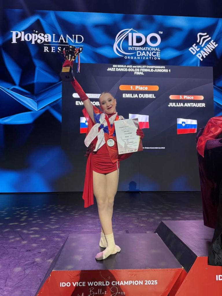 Čeprav šola praviloma ne objavlja rezultatov, doseženih v okviru klubskih dejavnosti, tokrat z veseljem naredimo izjemo. Tri naše učenke so na svetovnem prvenstvu v plesu dosegle vrhunske rezultate in stopile na zmagovalne stopničke – uspeh, ki presega vsakdanji tekmovalni okvir ter predstavlja izjemen dosežek na mednarodni ravni.