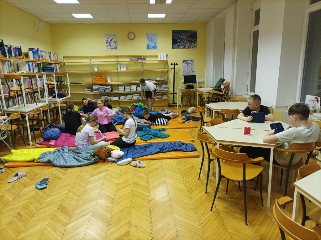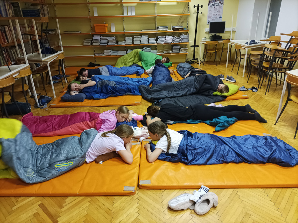 Dogodek sva povezali tudi z Nočjo branja, saj smo nekaj časa pred spanjem in v jutranjem času namenili tudi branju in prebiranju knjig.