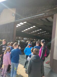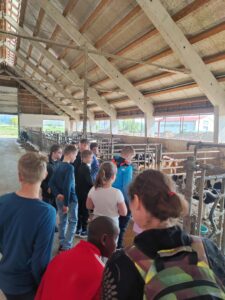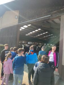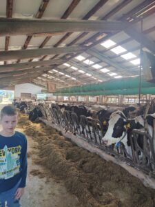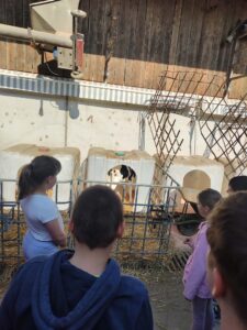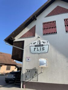 Že kar zjutraj smo imeli malo telovadbe, saj smo se sprehodili proti kmetiji, ki je nedaleč stran od železniške postaje v Šempetru. Od daleč smo zagledali napis KMETIJA FLIS, ki nam je pogrel srca, saj njihove izdelke že poznamo iz šole, kjer si želodčke razvajamo z njihovim mlekom, kefirjem in sadnimi jogurti. Sprejela nas je prijazna ga. Darija, ki nam je razkazala njihovo kmetijo. Ogledali smo si hlev, v katerem skrbijo za 180 glav živine. Razkazala nam je kmetijsko mehanizacijo, pokazala tudi teličke, goveda pasme Black Angus, njihovo ‘porodnišnico’ in ločevanje teličkov po starosti na ‘vrtec’, ‘osnovno šolo’, ‘srednjo šolo’ in ‘fakulteto’. Ogledali smo si tudi molzni stroj, ki na kmetiji Flis obratuje 24 ur na dan. Pogovarjali smo se o vzorcih na živalih, skrbjo za toliko živali, hranjenje krav, proces molžnje, proces pridelave mlečnih izdelkov in še kaj.