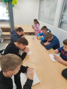 Ogled smo zaključili v njihovem prostoru za degustacijo, kjer smo si namešali vsak svoj sadni jogurt in se sprehodili še skozi trgovinico, ki je polna dobrot! Pa seveda, nismo pozabili tudi na petje slovenskih pesmi v zahvalo za go. Darijo in njeno prijaznost na naravoslovnem dnevu.